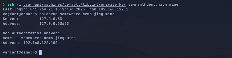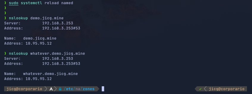*.demo.jicg.mine. IN A 192.168.122.100And define the names and DNS configurations for the zone.